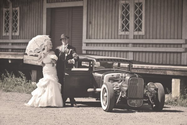 Hääpotretit miljöössä, valmistautuminen, vihkiminen ja hääjuhla.