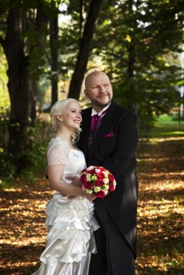 Hääpotretit miljöössä, vihkiminen ja hääjuhla.